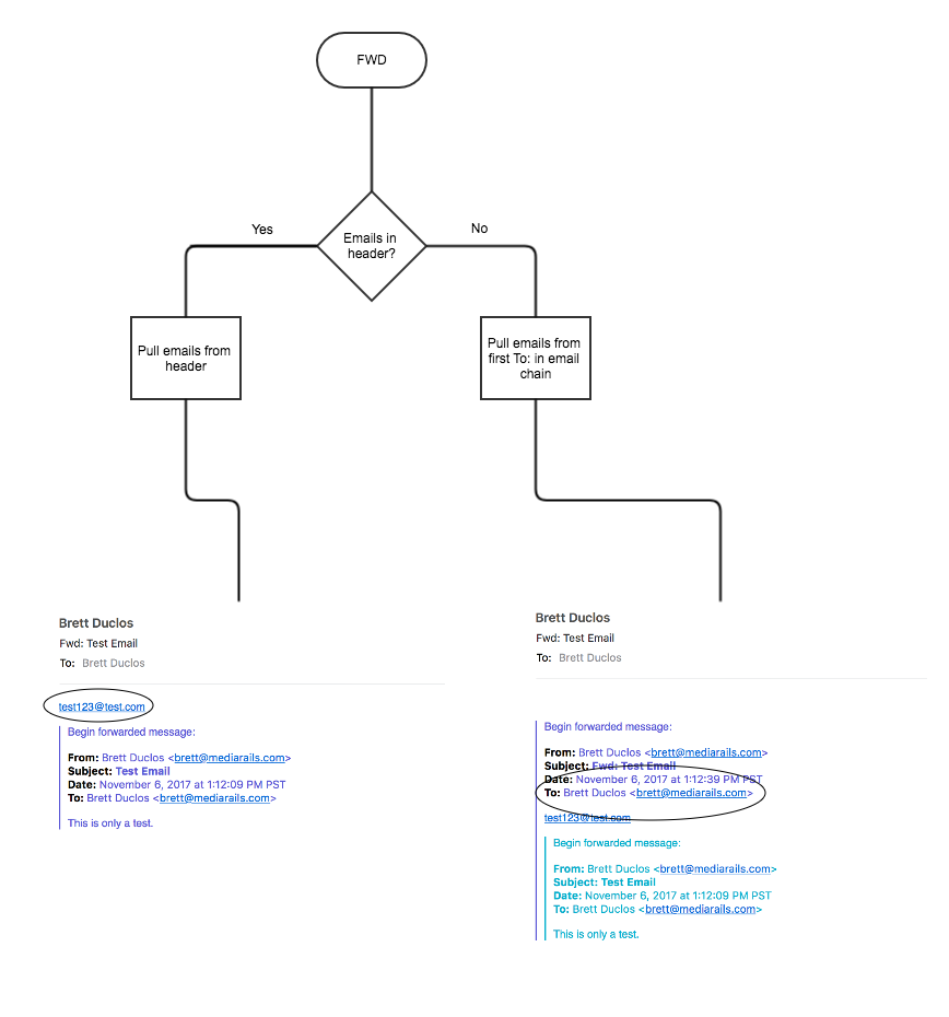 Step 2: System looks for data in body of FWD email to see if you input any contacts in here